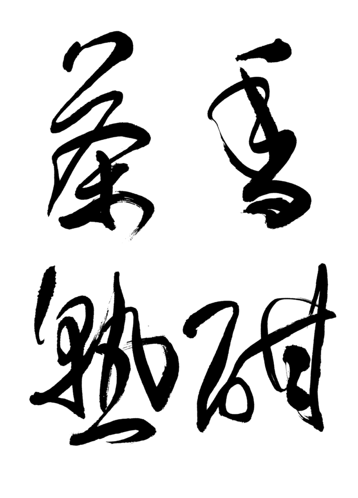 三番目の草書は、王鐸の連綿草を用いての表現です。草書を書き慣れていない方は、お手本の上を指で何十回もなぞってから筆路を自分のものにしてから書いてください。