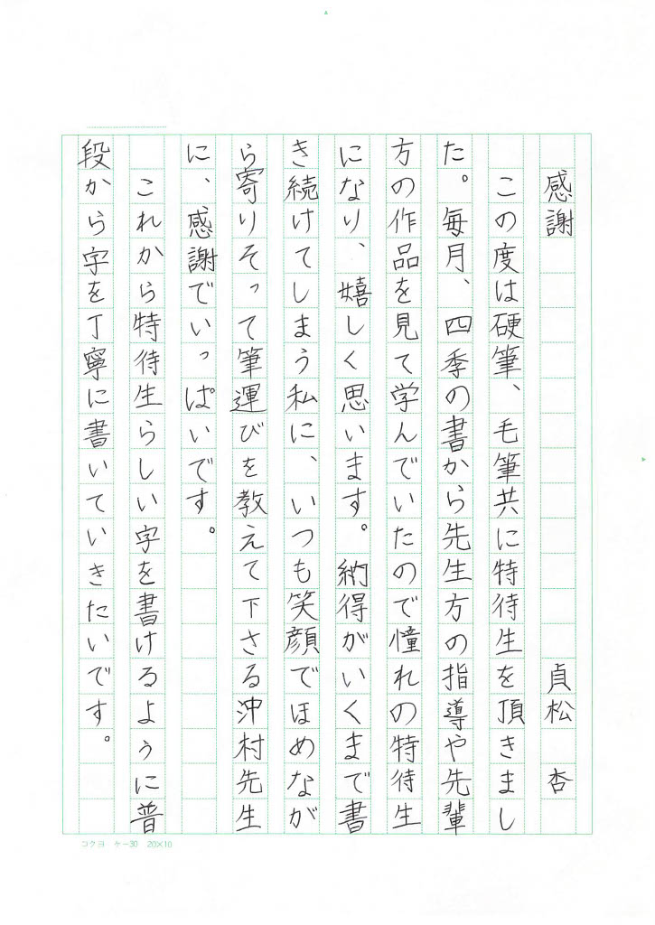 学生部 毛筆・硬筆 特待生合格
