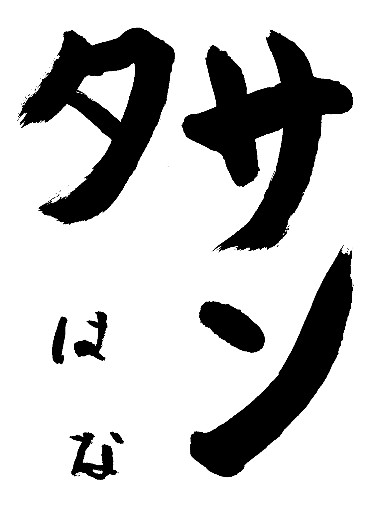 「サンタ」さん。すべてにはらいがあります。お空にひこうきがとびたつように、毛さきが紙からゆっくりとはなれていくようにかきましょう。いきをはきながらかくといいね。かたかなもかんじもよこせんは、右上りにしましょう。