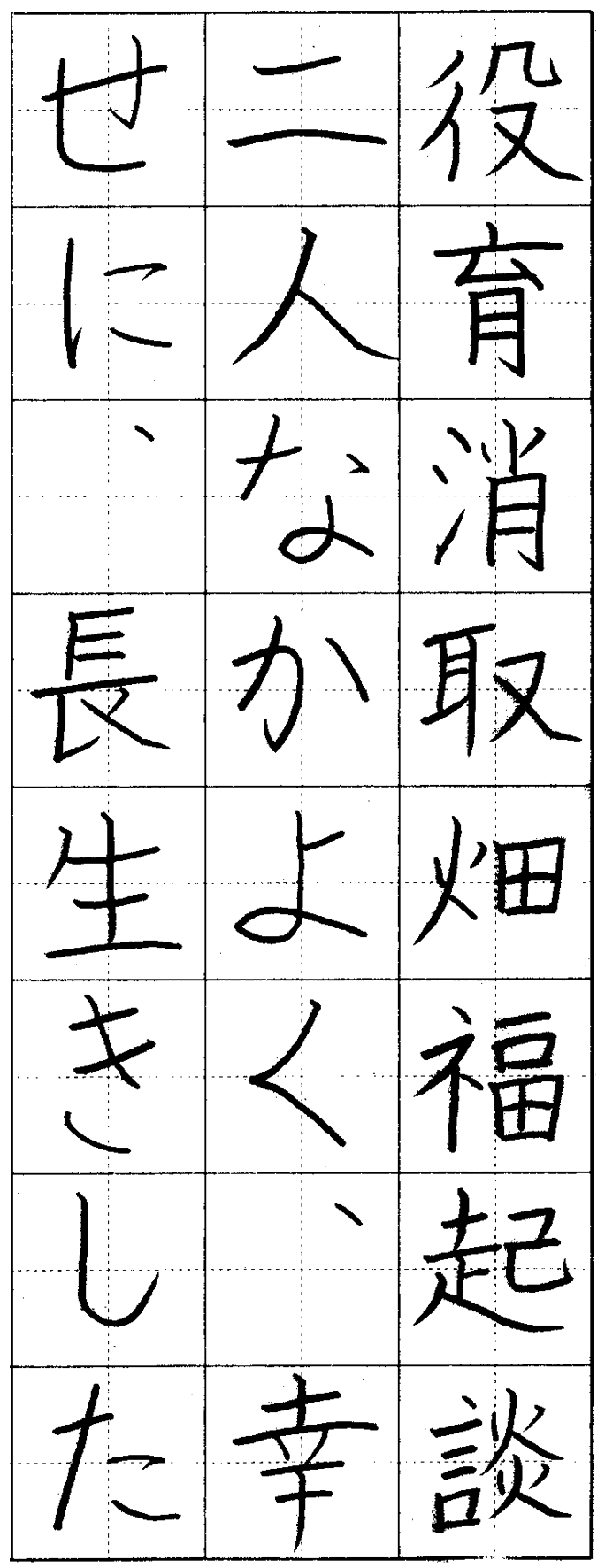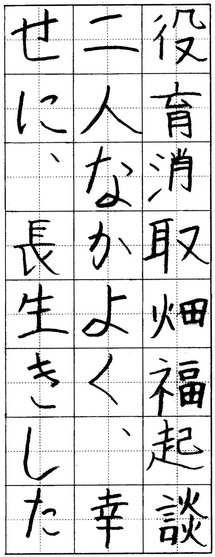 三年生は全体的におちついてしっかりと書けました。等間かくの右上りも出来ています。ギョウニンベンの方向のちがい、サンズイの間かくの違いなどもっともっと気をつけてみましょう。