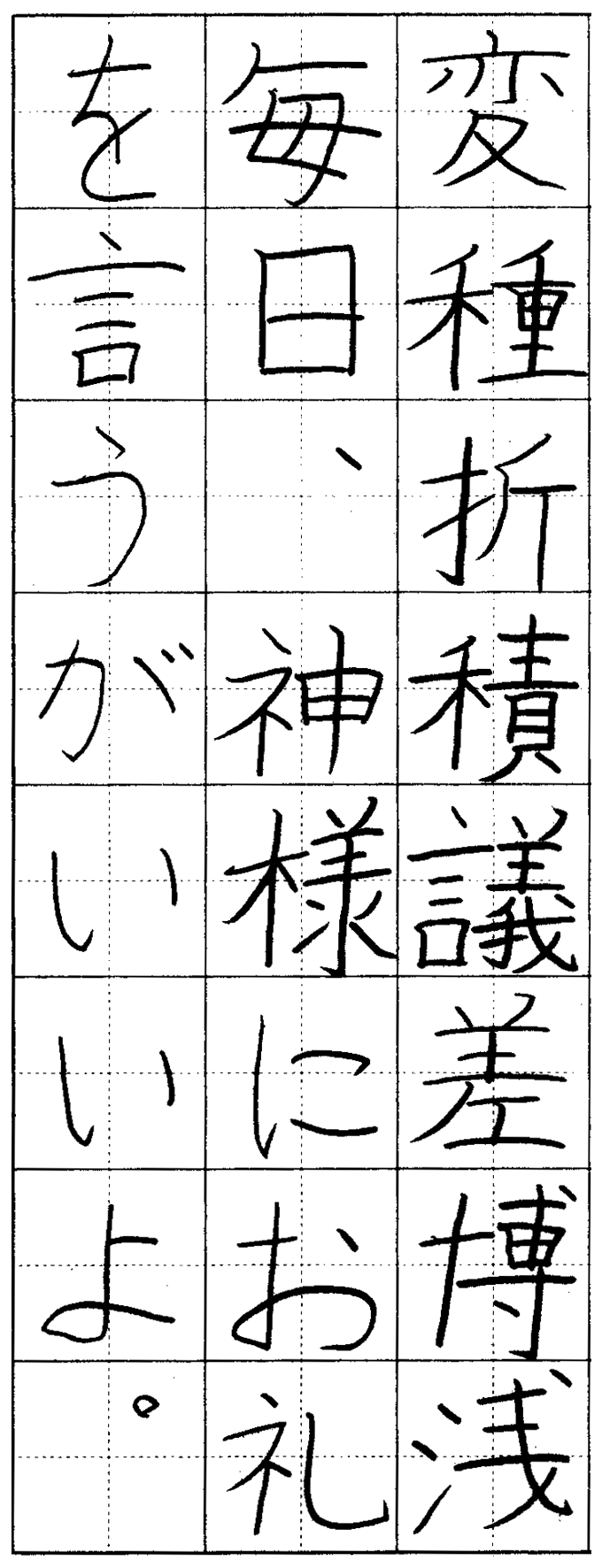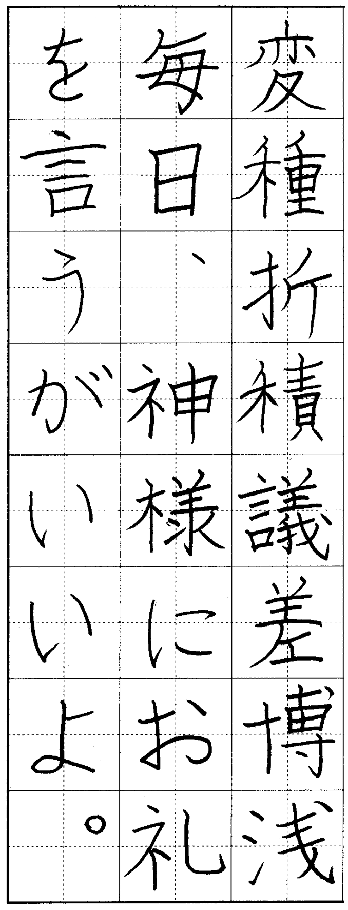 手本を見ようと心掛けていますが、右上がりもっと表現しよう。