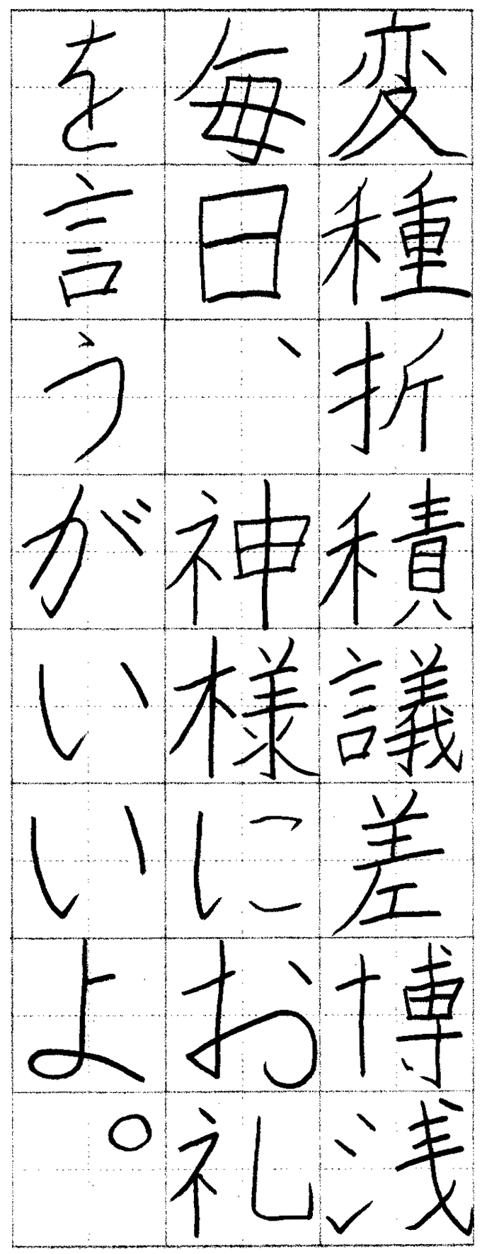 名前→本文→漢字の順番に書きましょう。本文とても良い!