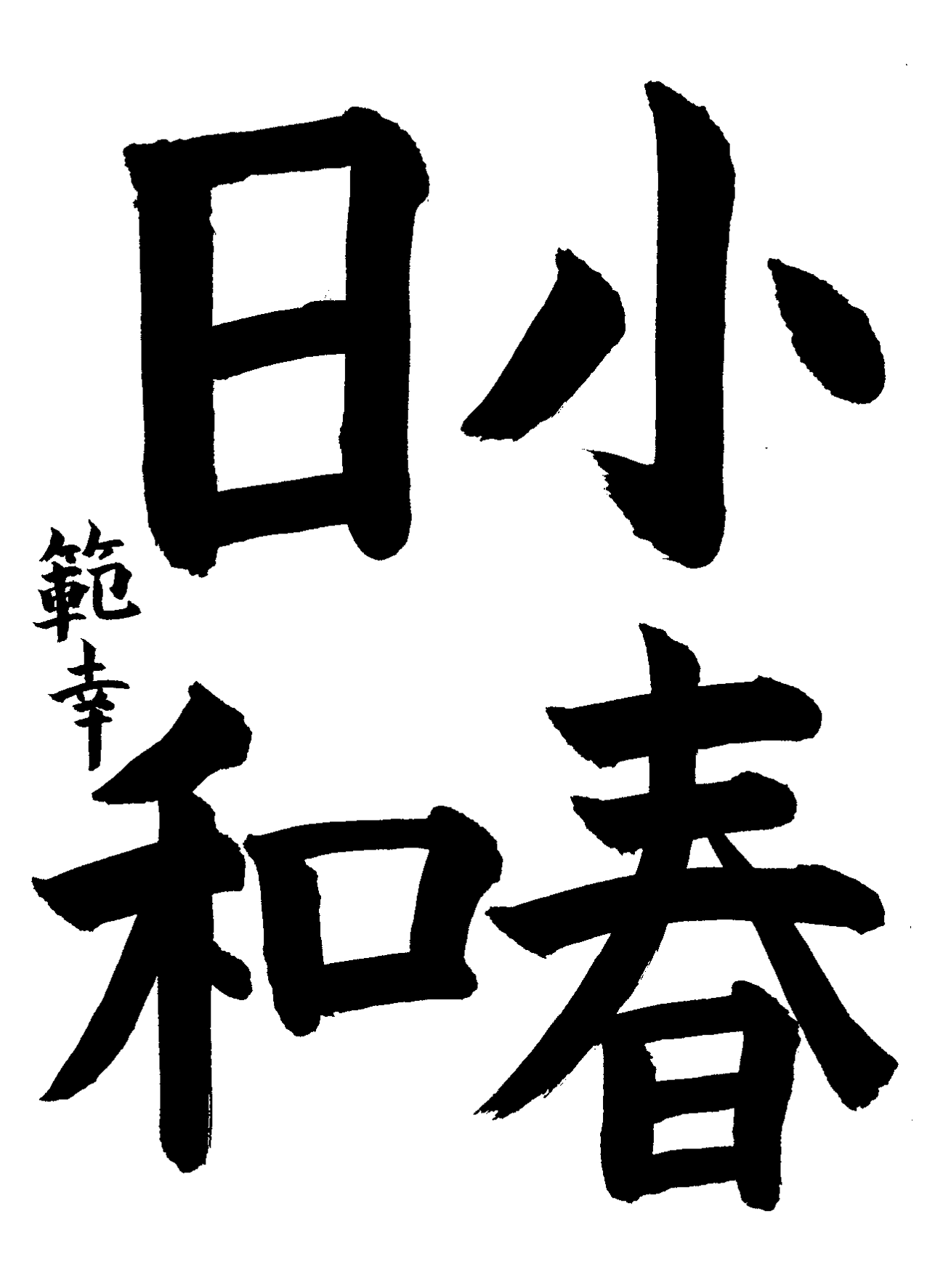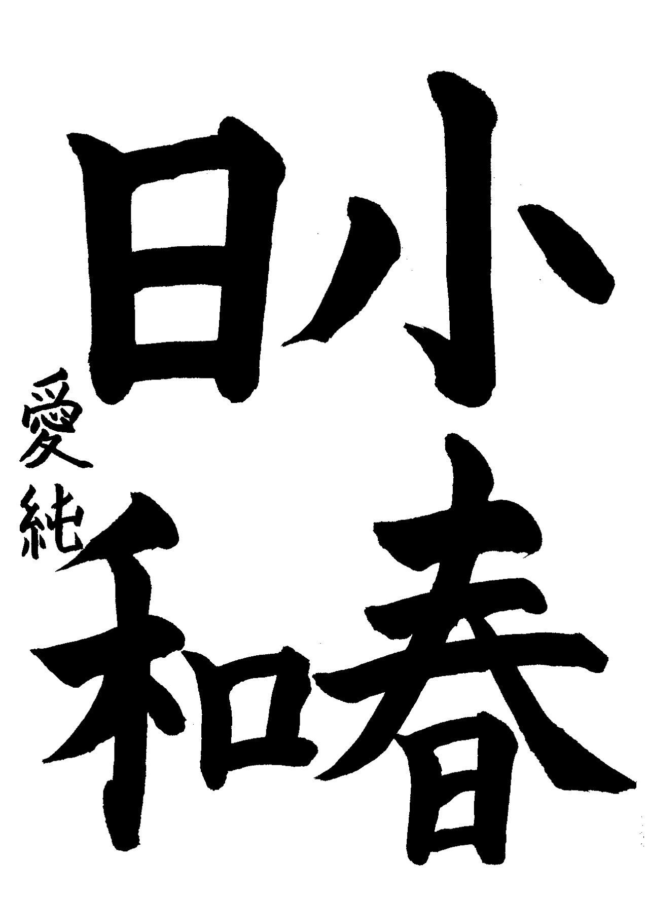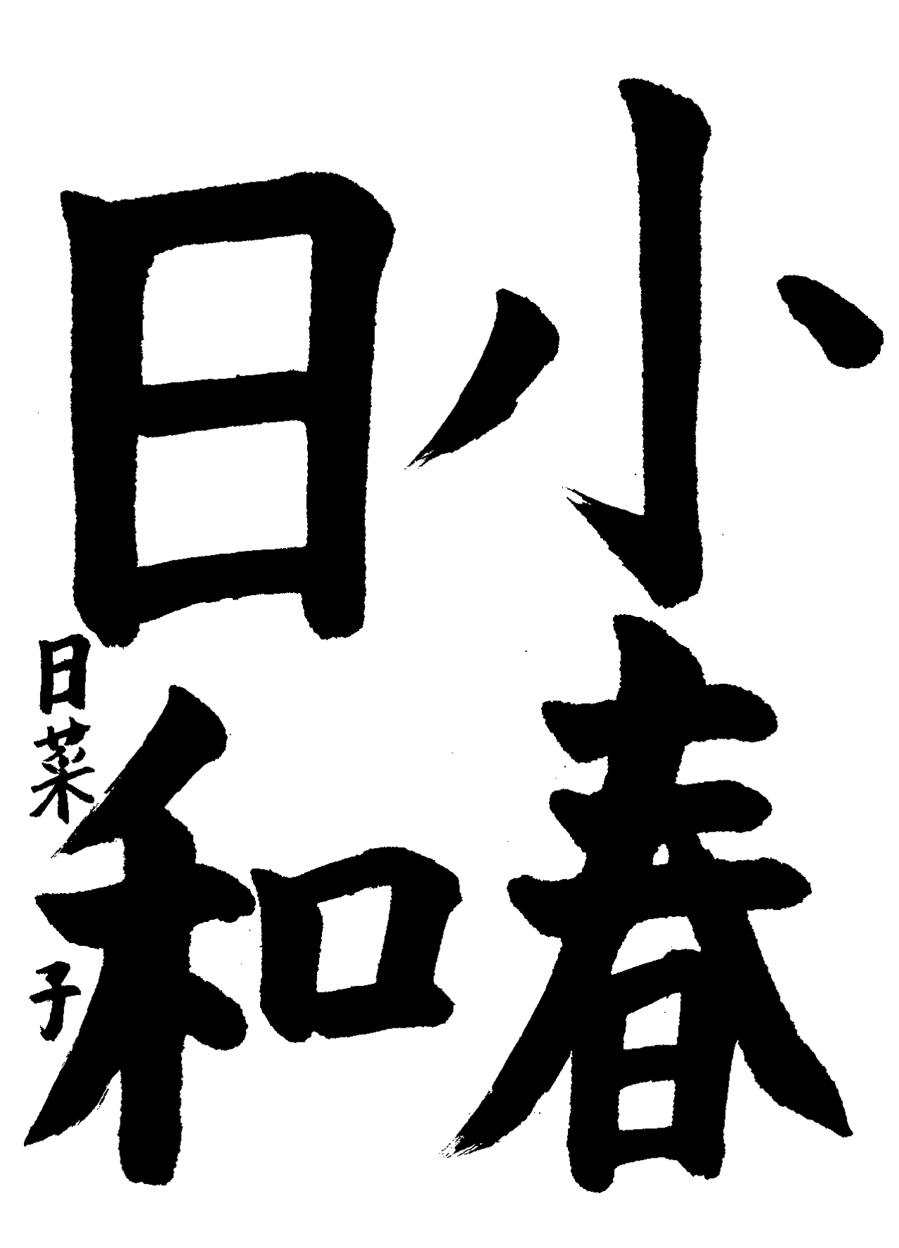五年生。十一月なのに「小春日和」です。とてもみなさん、よくかけています。起筆・収筆のまとめ方が上手になりました。横線と縦線の筆圧の違いを表現できるようになると良いですね。そのようにすると太細の変化が生まれます。当然、楷書は縦線を太くしましょう。