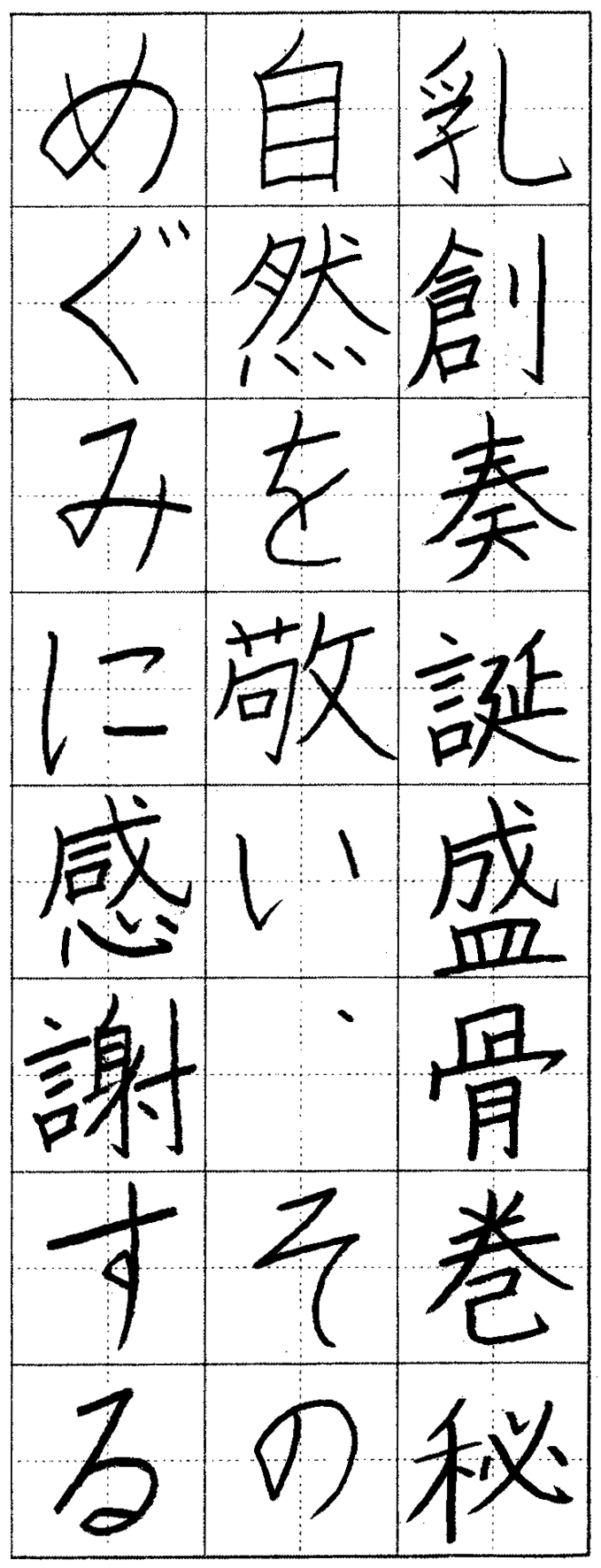 ゆったりと伸びやかな作品です。漢字の縦線はすい直に!