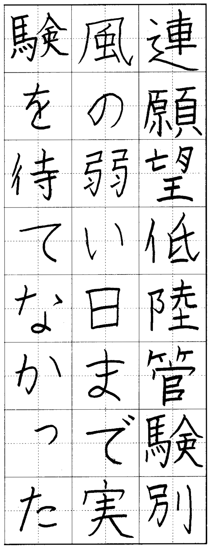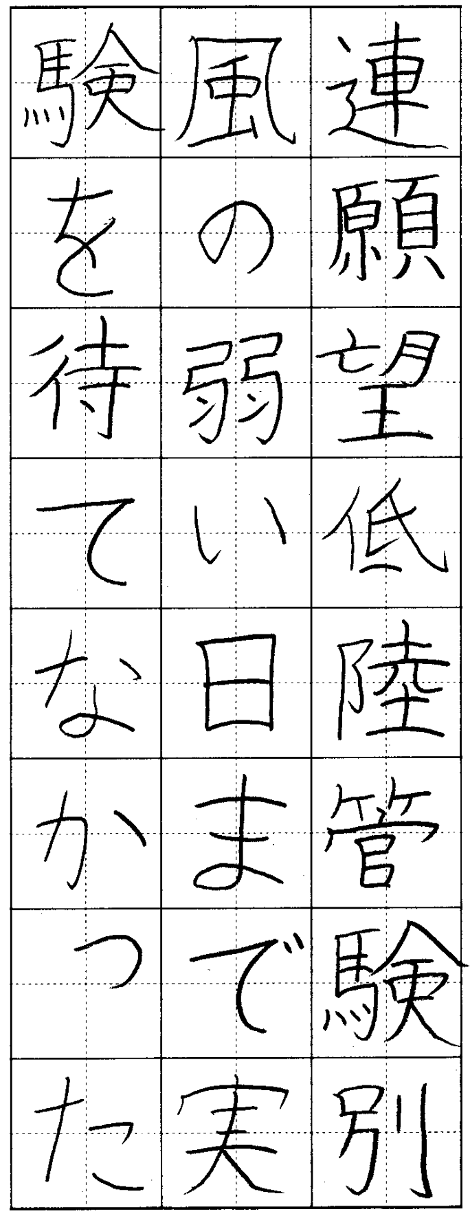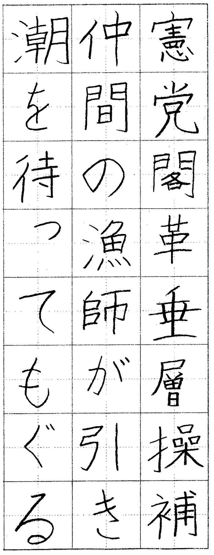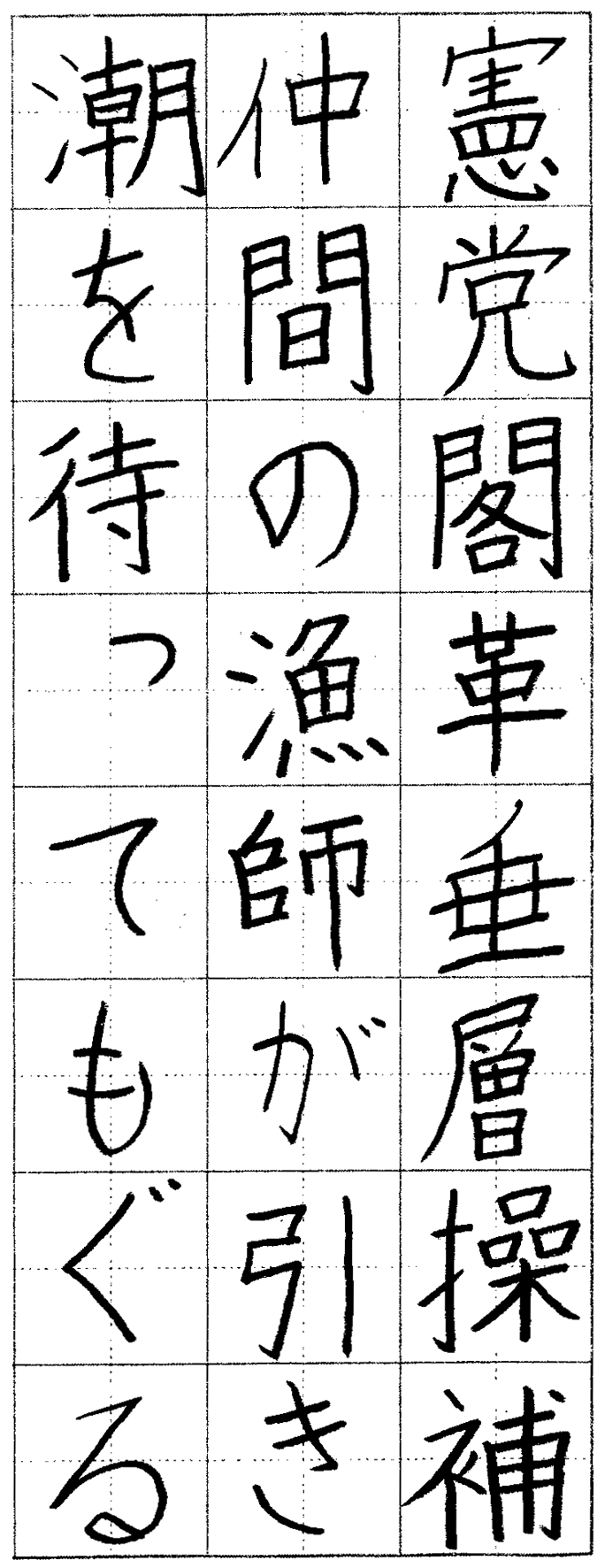 無理な力を使わないですがすがしい作。右上がりの統一を!