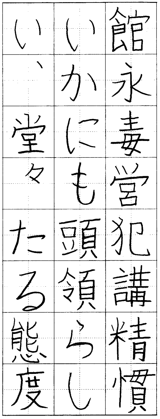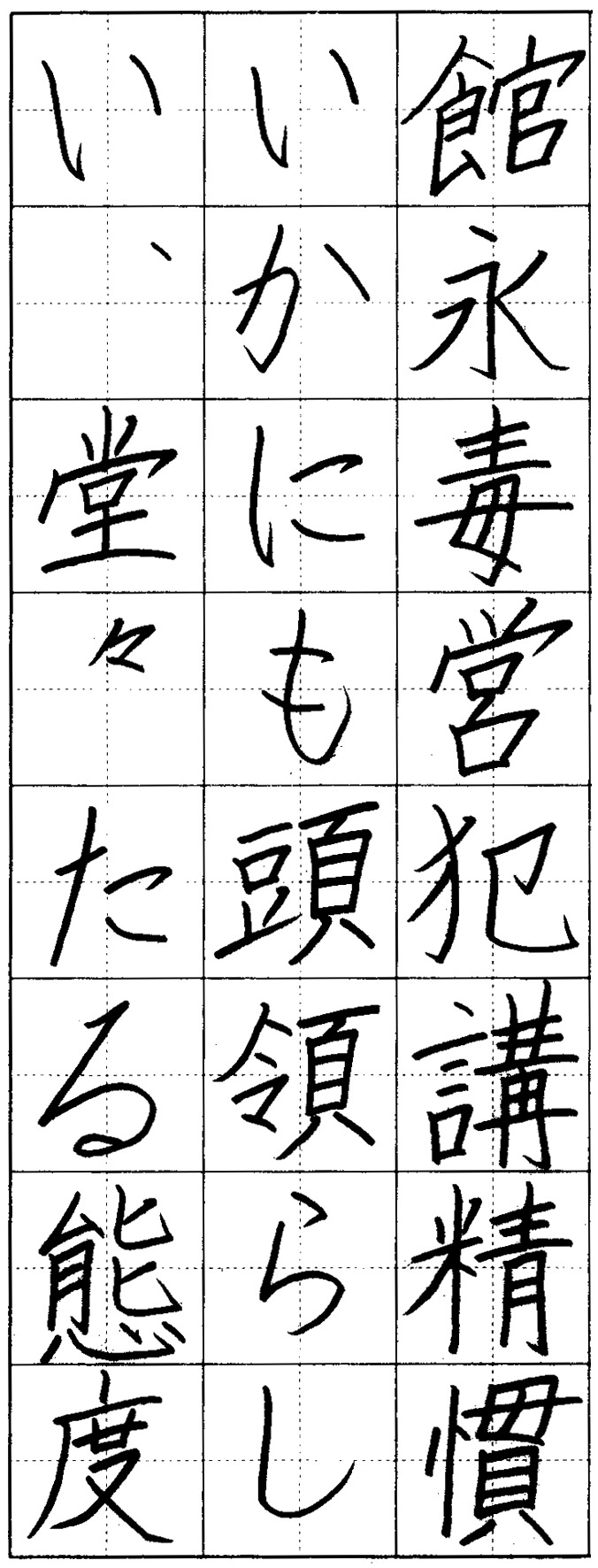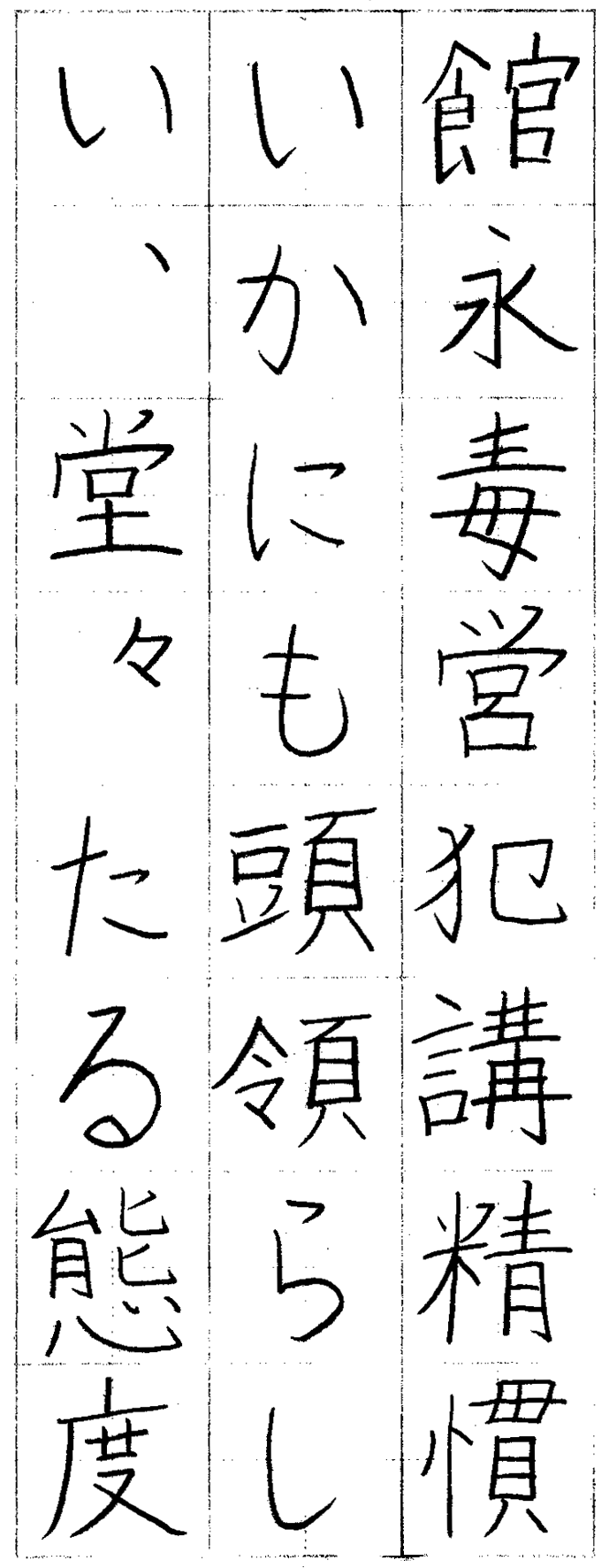 正確な字形で書写した。姿勢、持ち方に意を用いています。