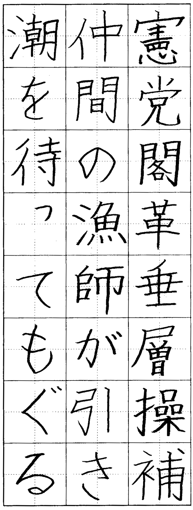 かん字、ひらがなの、ハネ、ハライが、きれいです。