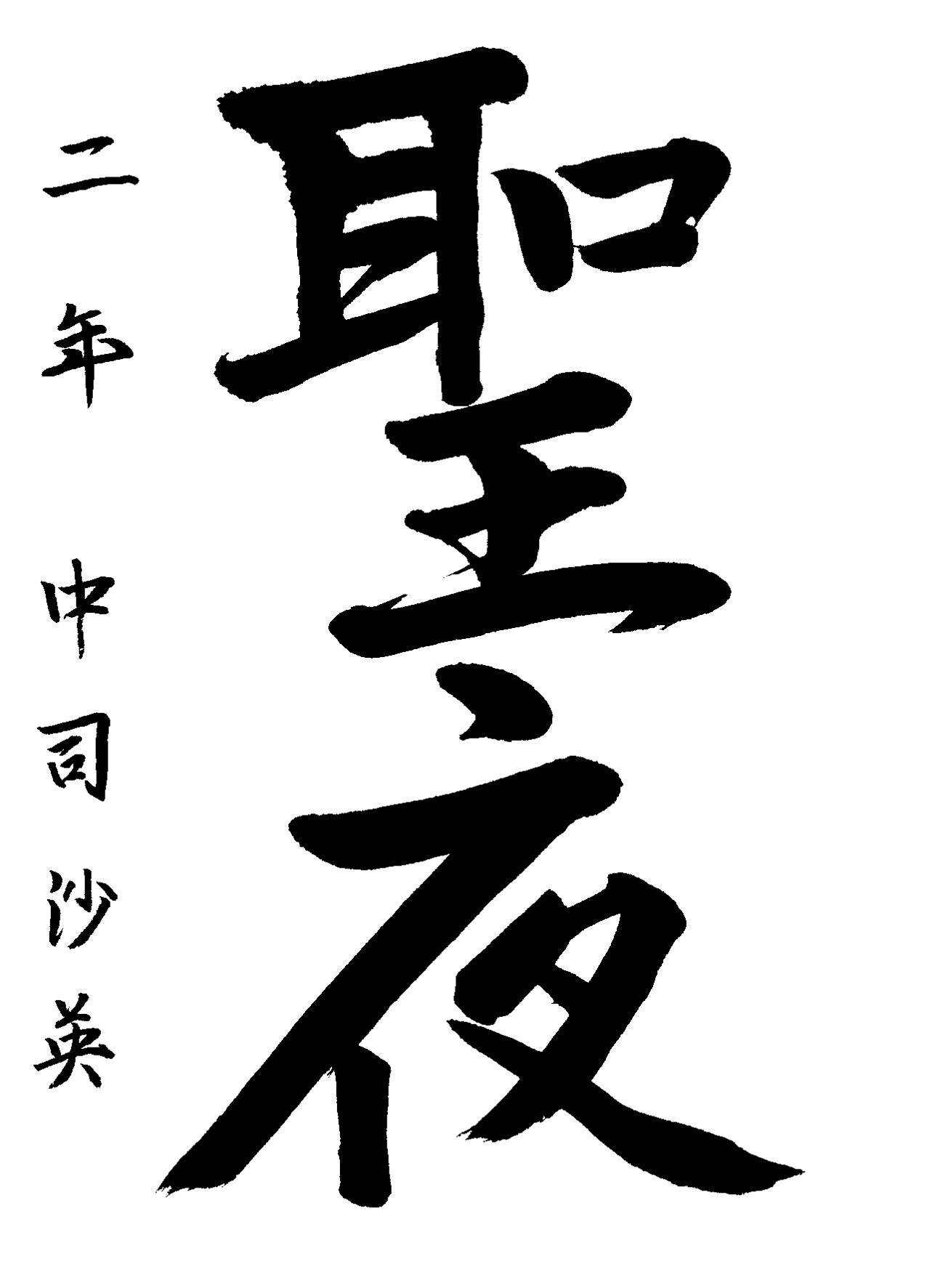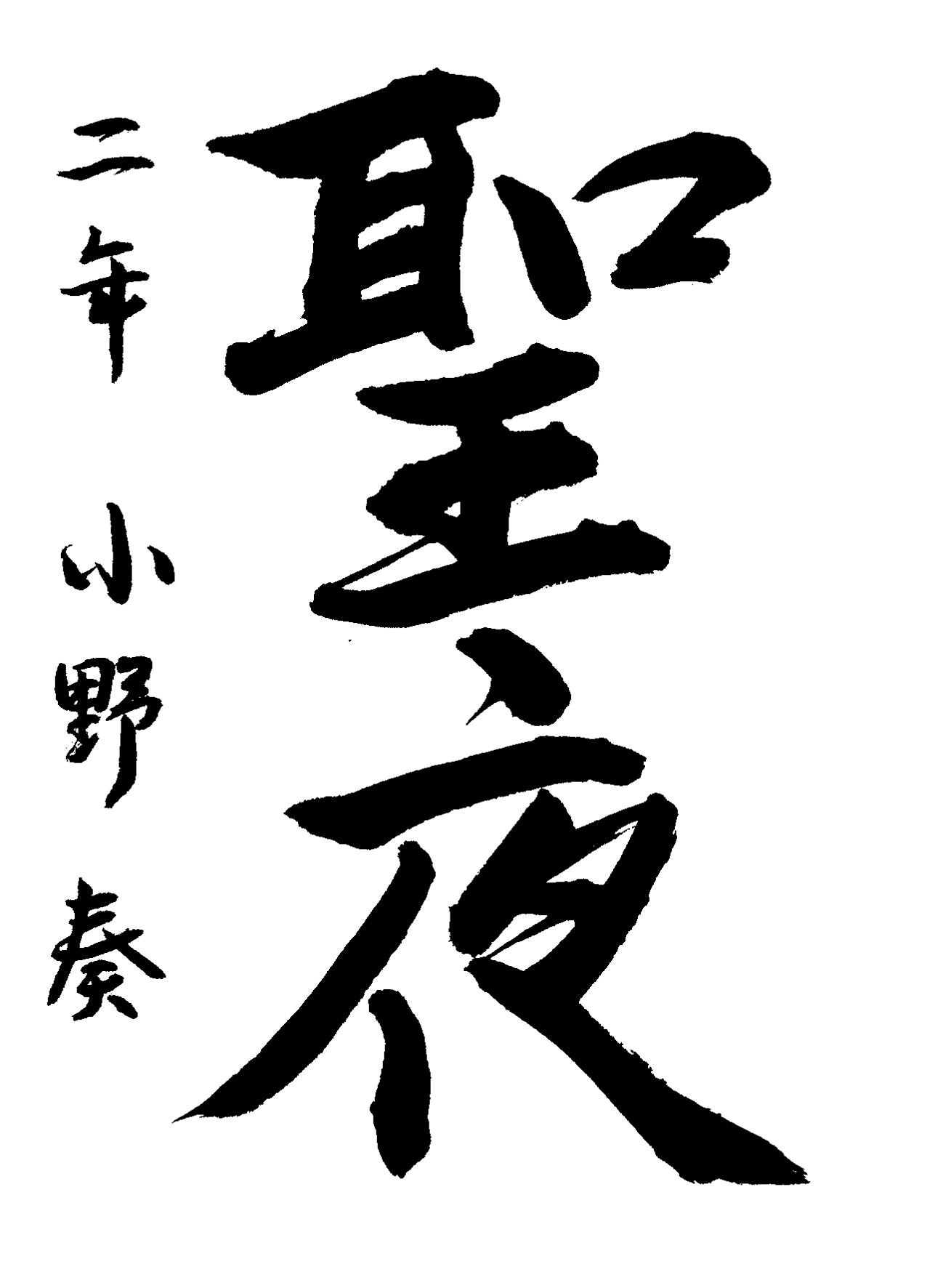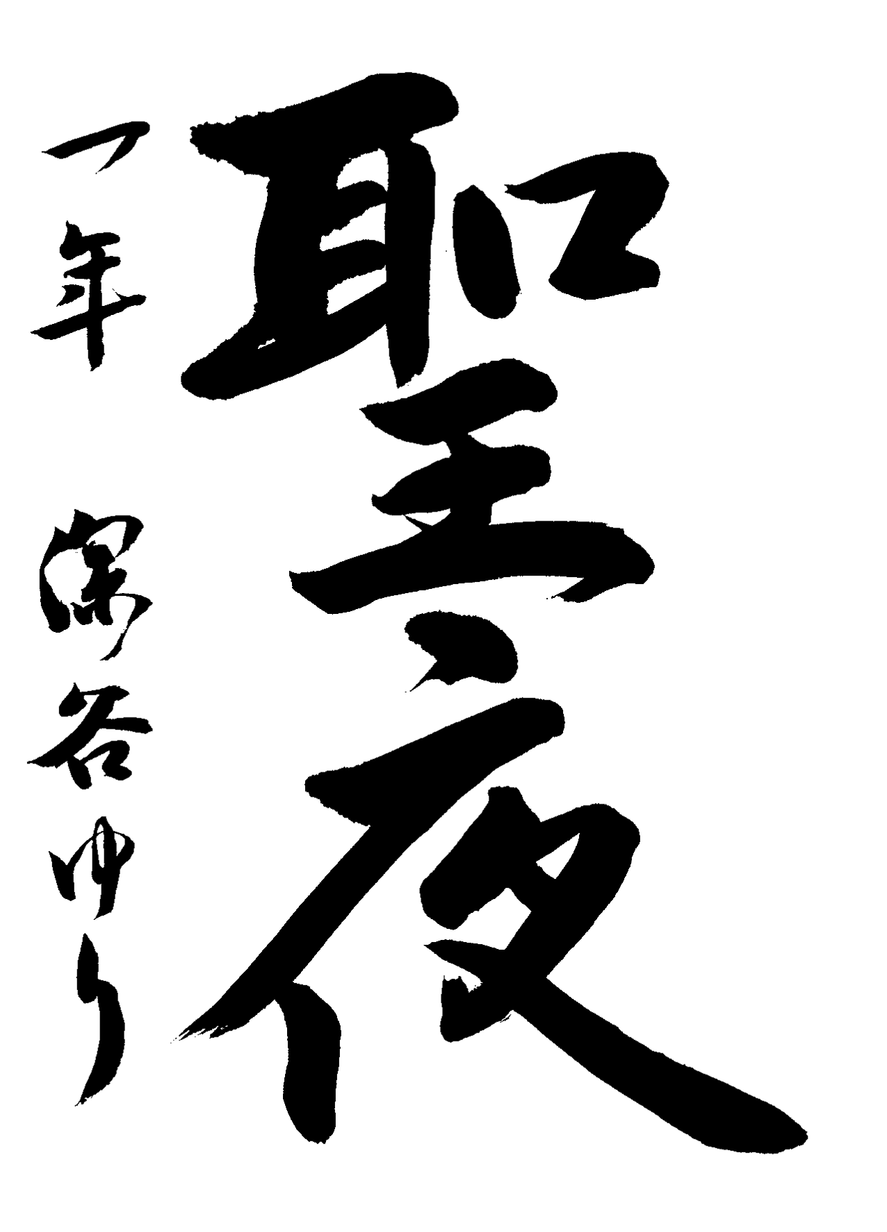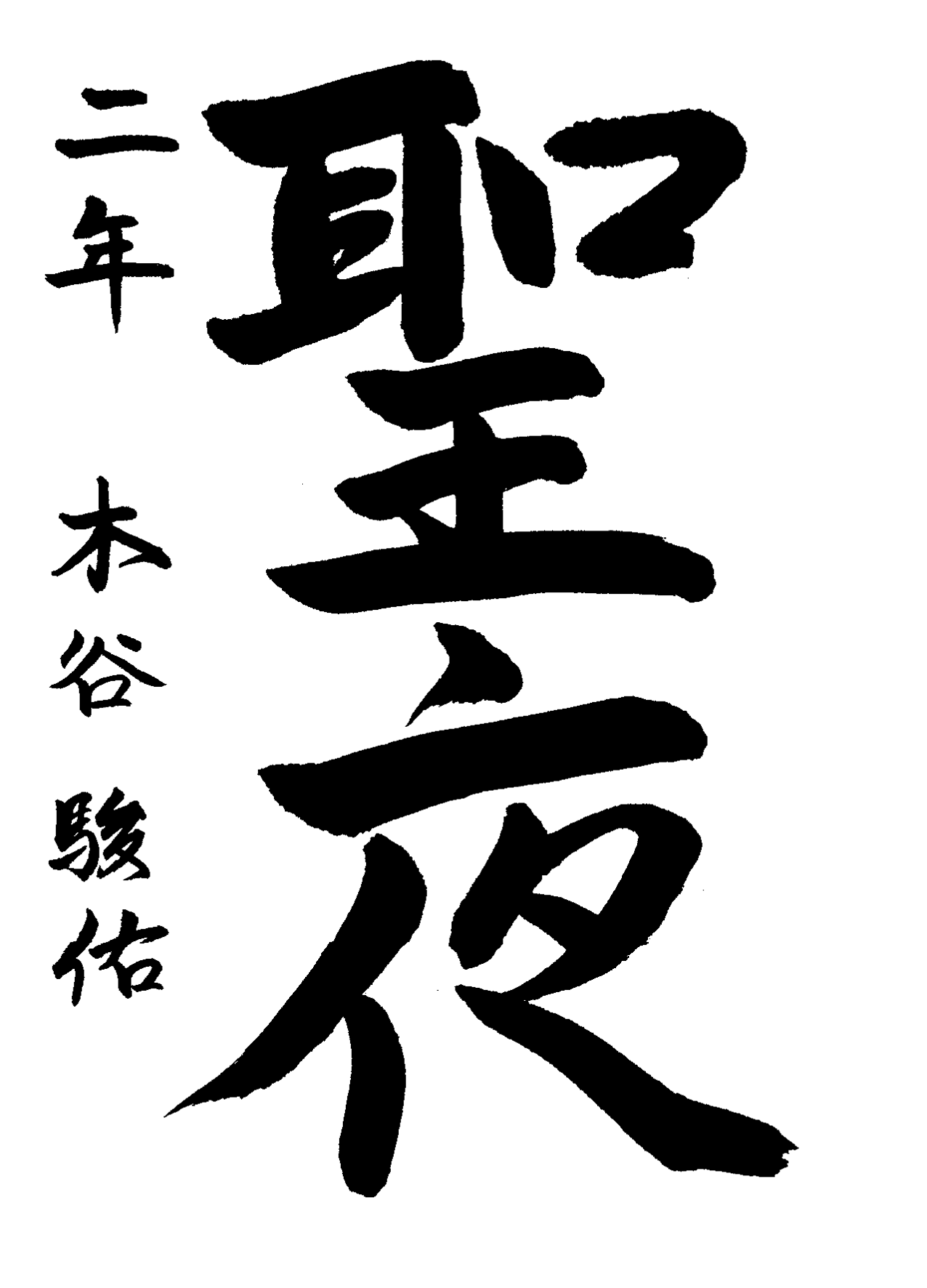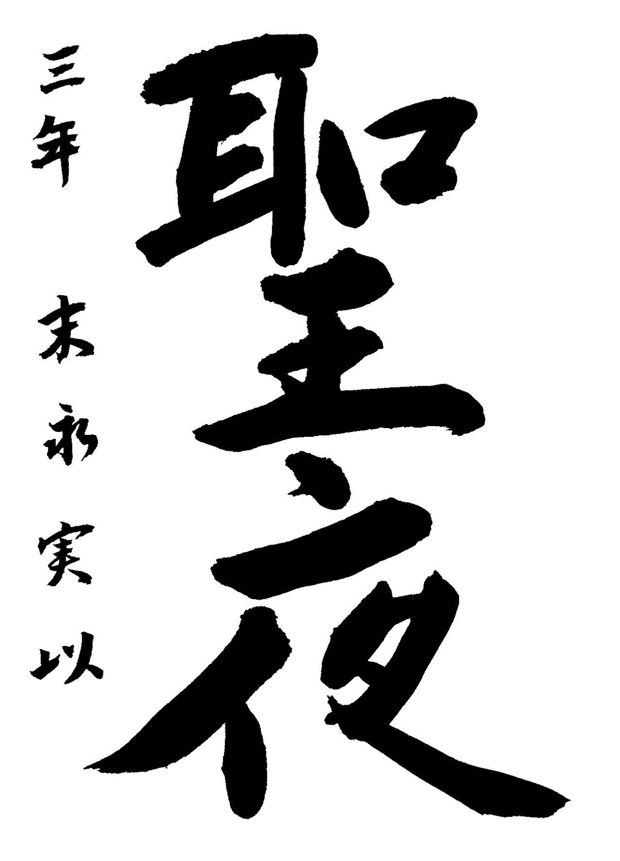聖の王の二画目から三画目、夜の夕から右払いにかけては、円運動を利用しながらつなげてゆくと良かったですね。連続する線も、ゆっくり毛先を意識して書きましょう。